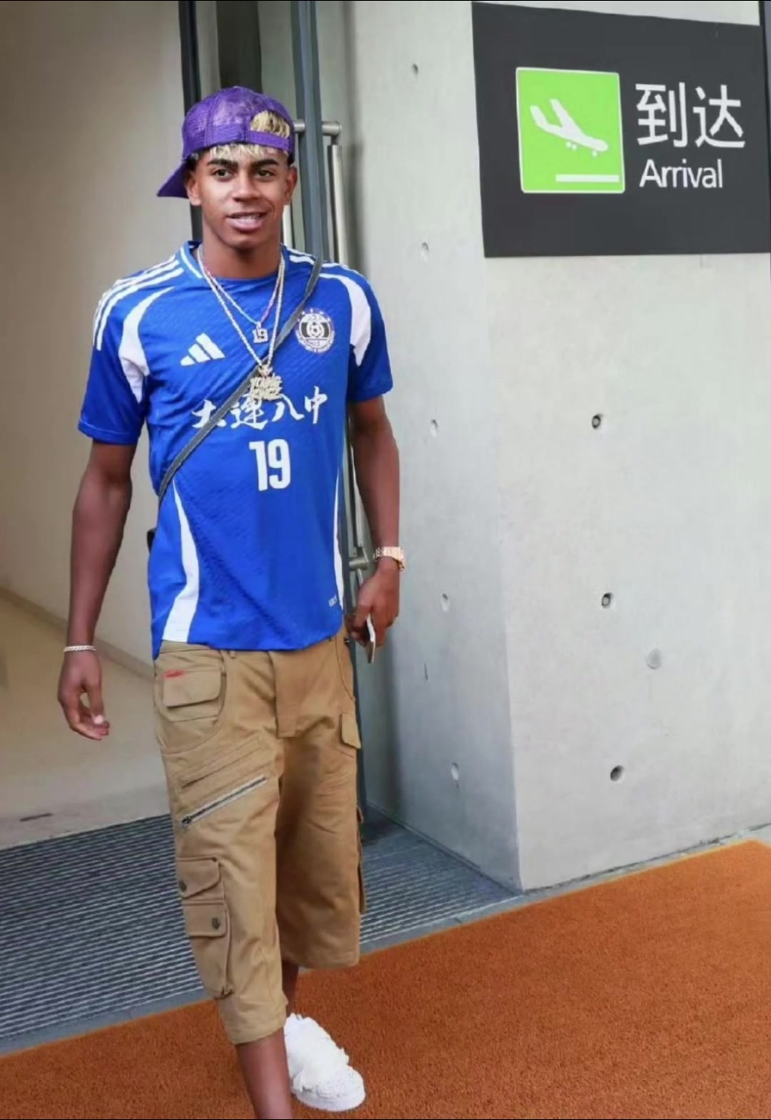 亚马尔已抵达上海身穿大连八中衣服亮了