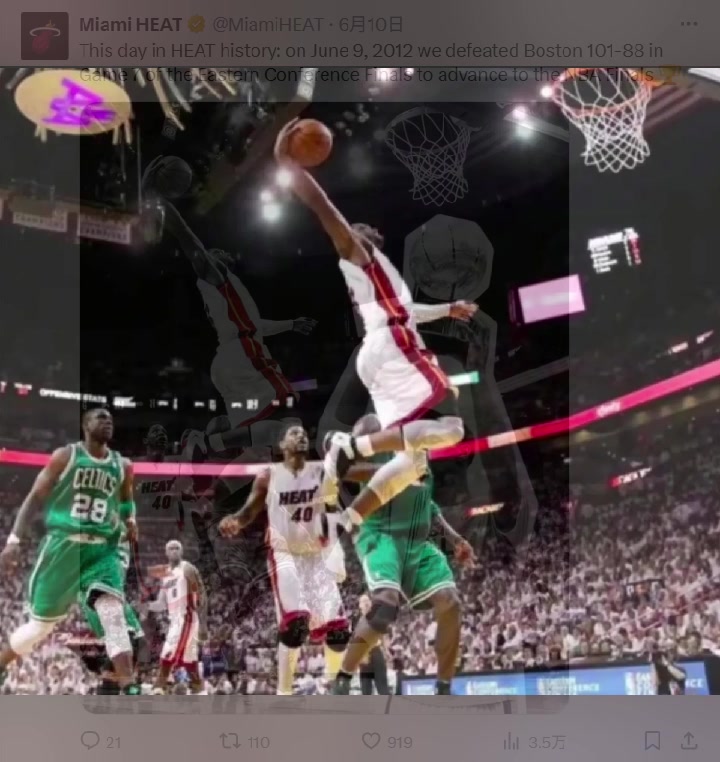 官方搞事热火官推晒12年夺东部冠军 截掉詹姆斯P上波什捧杯