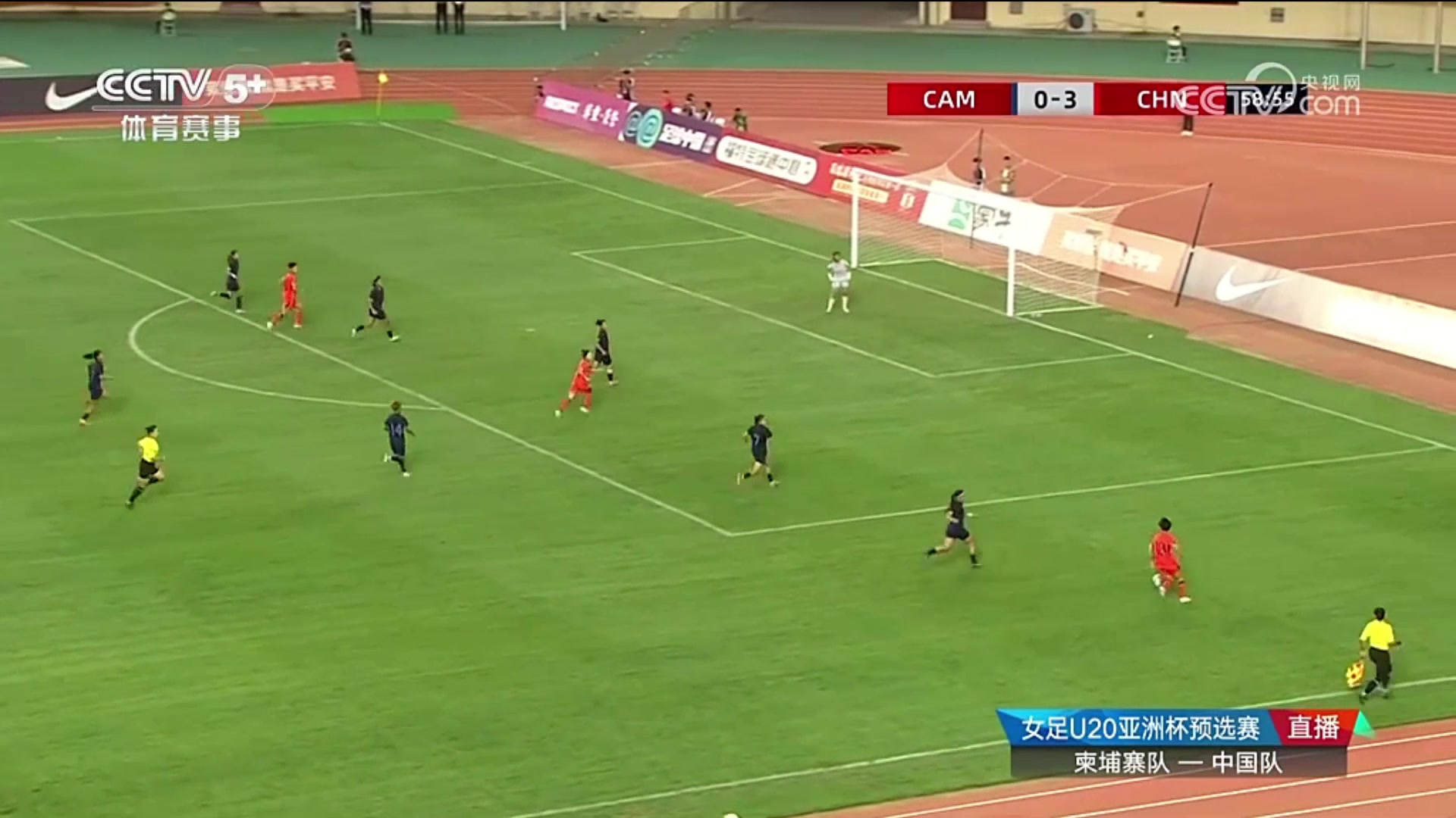 高空轰炸卢家玉头球破门U20女足1-0领先柬埔寨女足