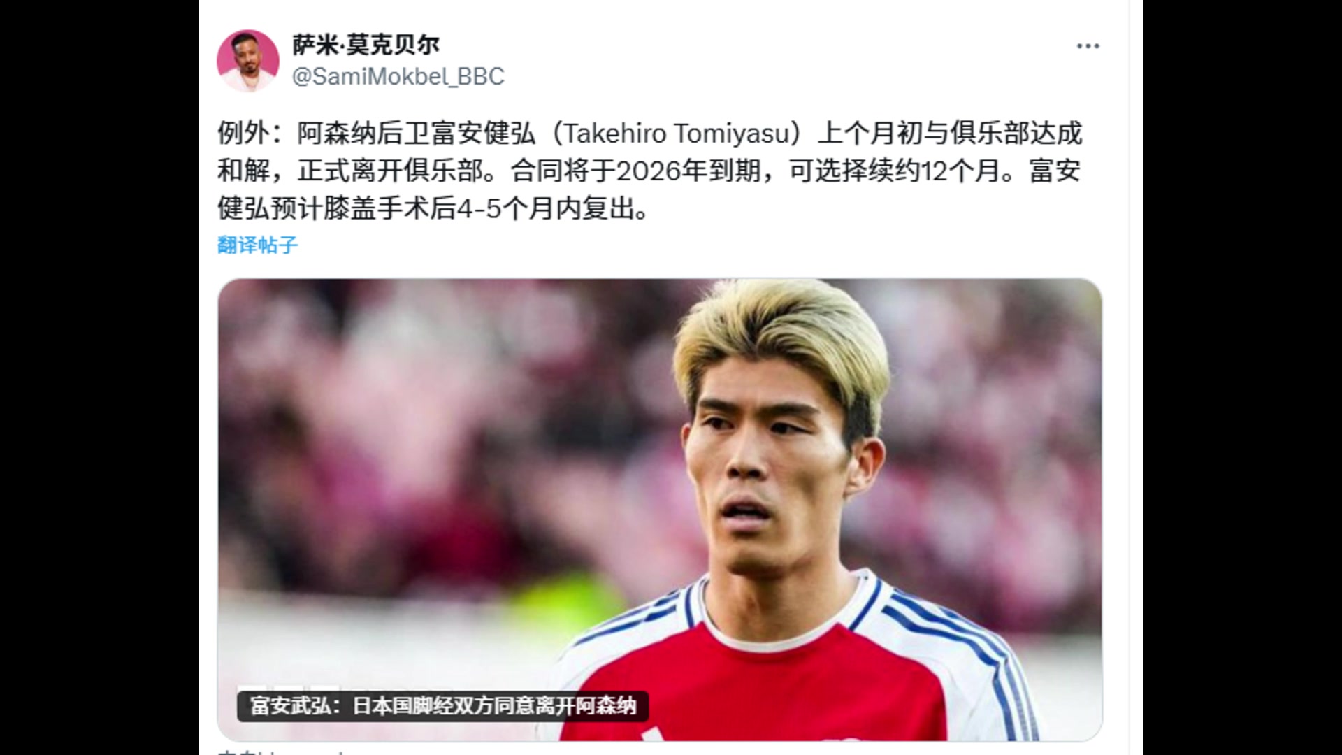日本旅欧球员-1BBC记者阿森纳与日本后卫富安健洋解约