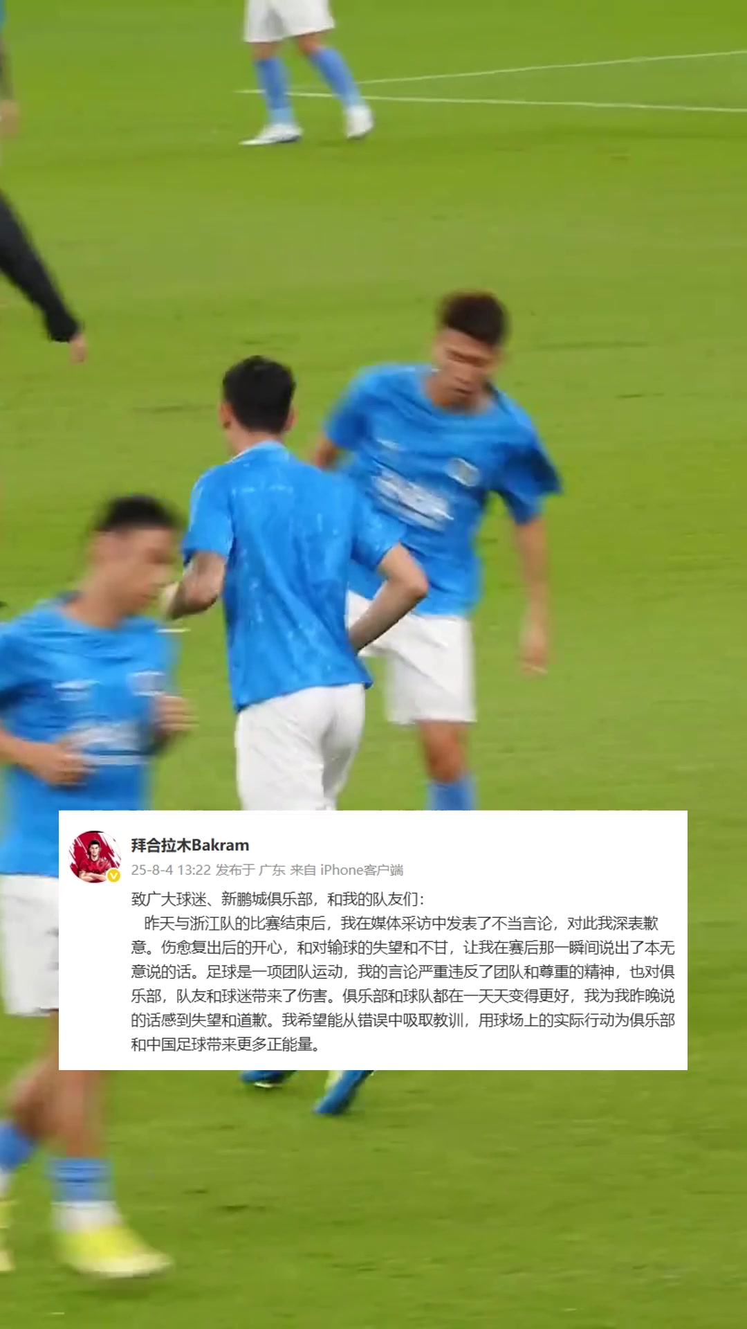 拜合拉木致歉我在采访中发表了不当言论严重伤害了团队和队友