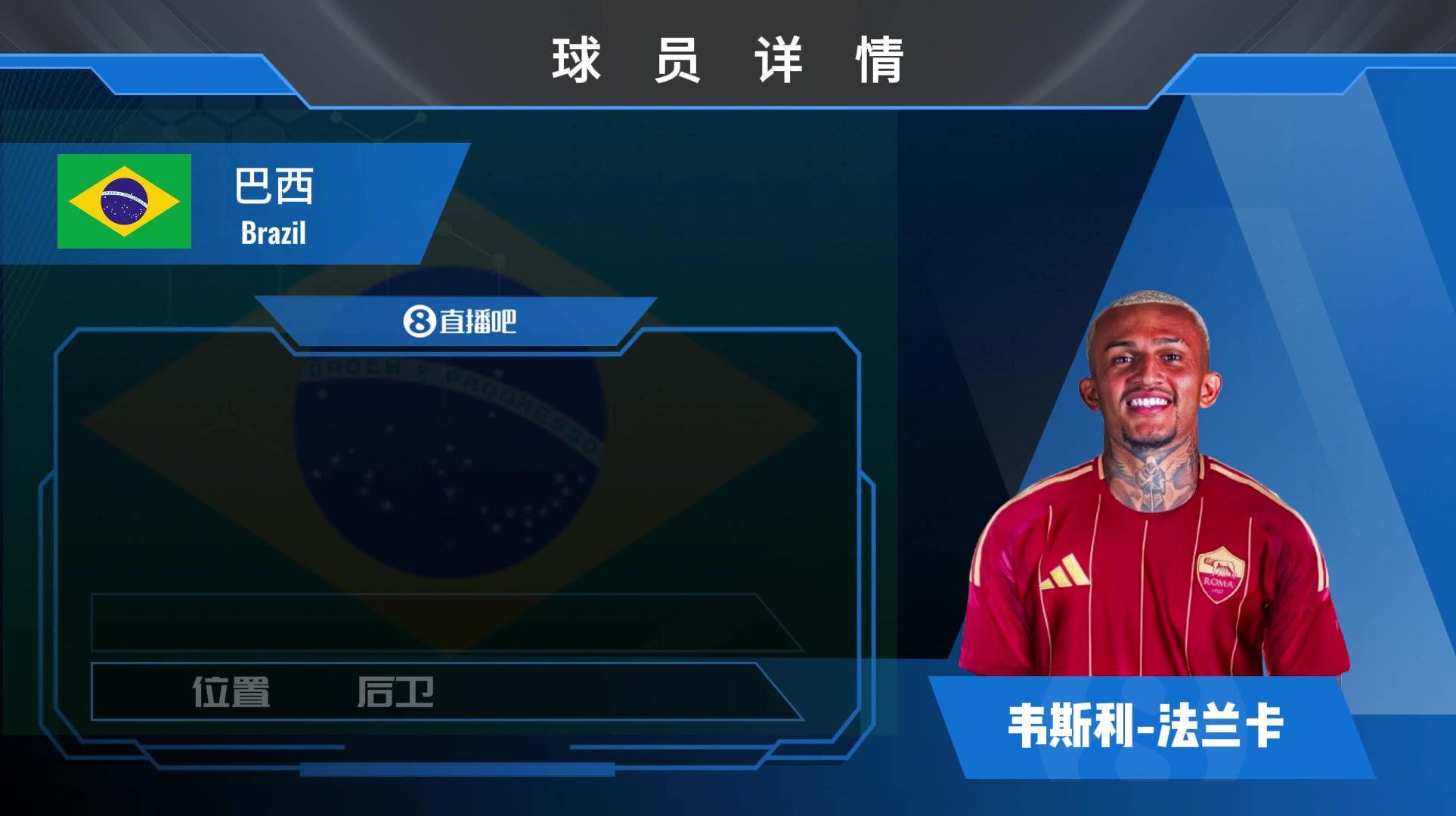 罗马新援韦斯利有点儿技术能上能下善于对抗的巴西右后卫
