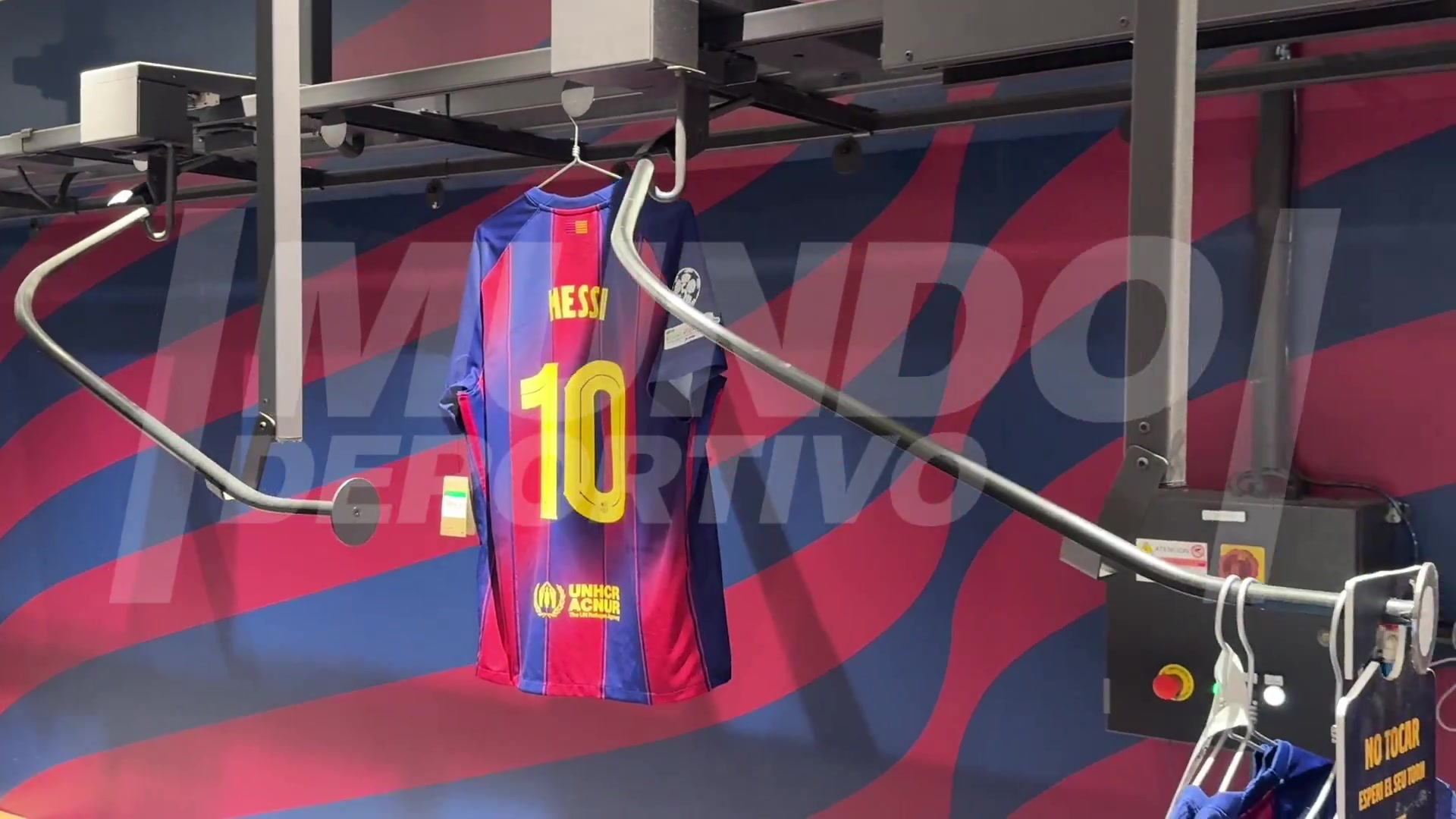 赚情怀新款巴萨球衣在商店出售上面印有梅西的名字和号码
