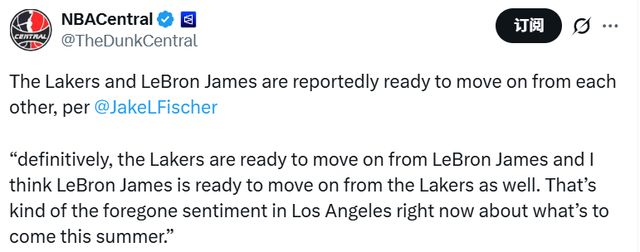 北京時間2月3日,據名記Fischer報道,湖人已經準備好與勒佈朗-詹姆斯分道揚鑣,詹姆斯也準備好離開湖人隊瞭。這幾乎是目前洛杉磯對於今年夏天即將發生的事情的普遍看法。