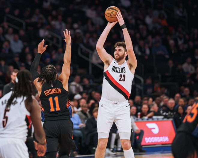 尼克斯隊的佈倫森得到26分,阿奴諾比得到24分和6個籃板,哈特得到20分、6個籃板和5次助攻,唐斯得到14分和20個籃板,科萊克得到13分,佈裡奇斯得到10分和5次助攻。開拓者隊的夏普得到26分,格蘭特得到15分,西索科得到15分,勒夫得到12分和4次助攻,阿夫迪亞得到11分和5個籃板,羅威得到4分和12個籃板,楊瀚森替補打瞭4分多鐘沒有出手機會。
