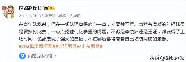 但現階段浙江男籃既有充足的外援配置,也有一眾處於巔峰時期的老大哥坐鎮,李悅洲需要在心態方面做出調整,尤其是防守端的貢獻,至少要達到平均水平以上,否則,想要在浙江男籃長期立足核心輪換,不確定因素是比較大。