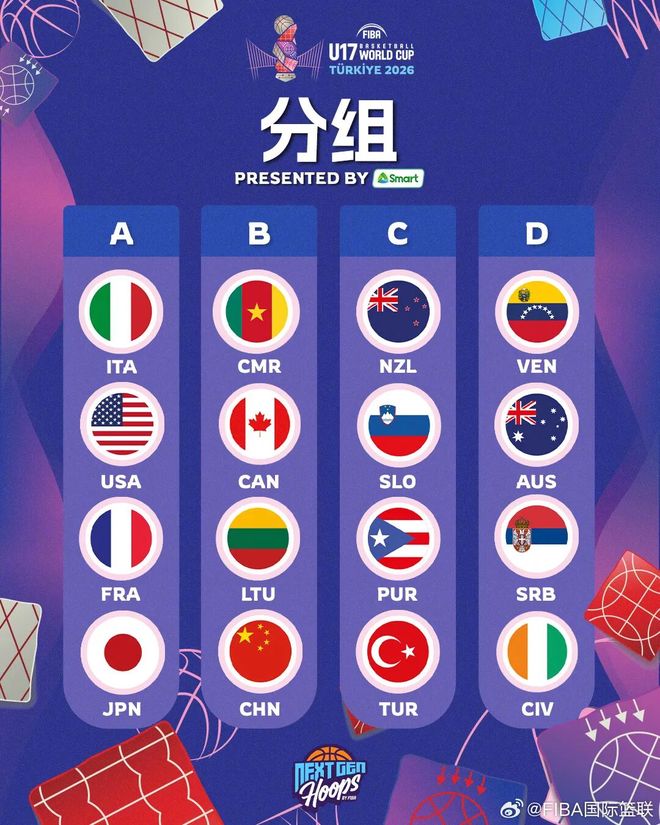 近日,2026FIBAU17世界杯抽簽結果出爐,中國隊和 立陶宛隊、加拿大隊、喀麥隆隊分在B組,此前相同班底獲得U16亞洲杯亞軍。