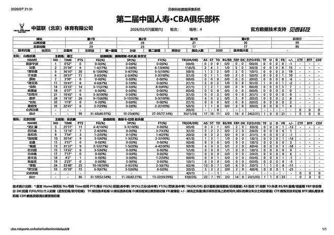 北京時間2026年2月7日19:30,第二屆中國人壽·CBA俱樂部杯決賽階段繼續進行,山西汾酒在伊泰·呼和浩特內蒙古體育館,迎來與北京控股的1/4決賽對決。本場比賽,山西隊上半場處理球急躁,防守端出現太多無畏的犯規,中場調整後,全隊在攻防兩端均有明顯改善,進攻明確,防守積極,並且在末節展現出足夠韌勁,最終取得勝利,全場比賽結束,山西汾酒99:86戰勝北京控股,成功晉級四強。