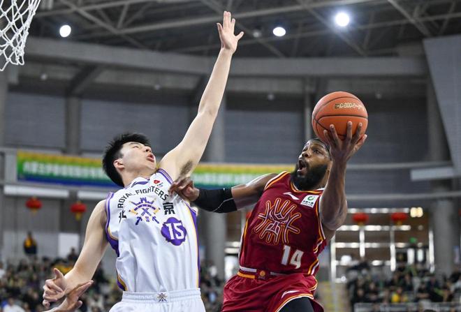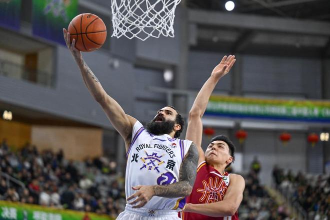 2月7日,北京控股隊球員裡勒(左)在比賽中上籃。新華社記者 貝赫 攝