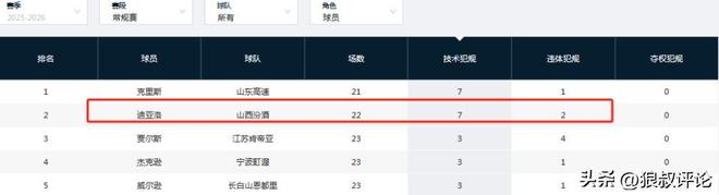 新賽季至今,迪亞洛的情緒管理問題,深受外界的關註,在第一階段的常規賽,迪亞洛以7次技術犯規,2次違體犯規,並列領跑技術犯規的榜單。