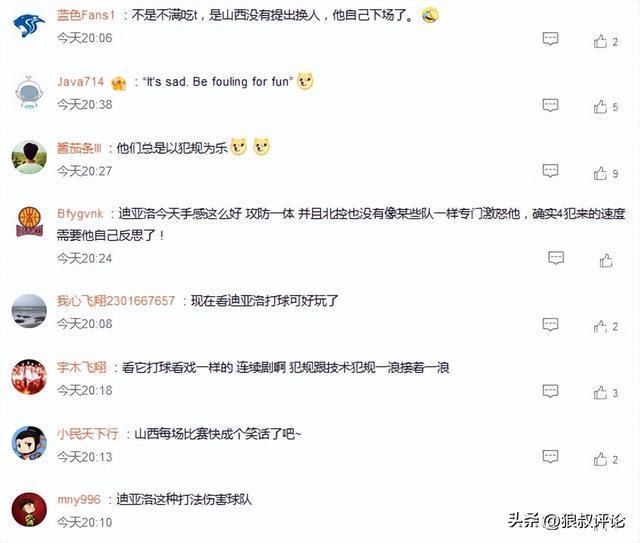 全場比賽的對抗尺度並不是很大的情況下,迪亞洛一些犯規動作控制,仿佛是求戰欲望不高,除瞭爭議的山西男籃尚未啟動換人,他自己下場吃到技術犯規,第四節更是隻打瞭31秒,火線領到自身的第五次犯規,累計犯滿離場。