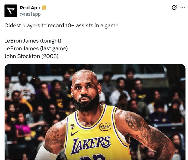 憑借這樣的表現,41歲零40天的詹姆斯超越上一場的自己,成為NBA歷史上單場送出至少10次助攻最老的球員。