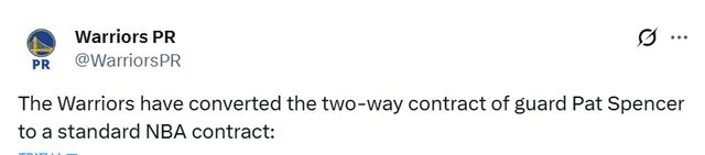 勇士在交易截止日後,陣容原本有兩個正式名額空缺。在將斯賓塞合同轉正後,球隊目前還剩一個正式名額以及一個雙向合同名額。