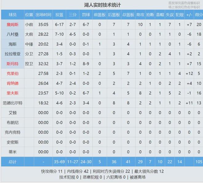 最後看看比賽數據,滿分10分,你給肯納德首秀打幾分?