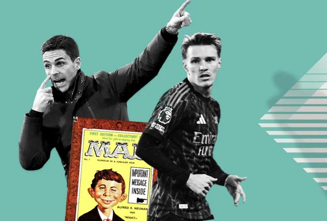 阿爾弗雷德-紐曼幾乎從1954年起就出現在《Mad》雜志的每一期封面上。他是一個瘦削、牙縫很大的紅發男孩,滿臉雀斑、招風耳,帶著一副有點傻氣的笑容,身邊常常配著那句同樣不過腦子的座右銘:“我?擔心什麼?”(What, me worry?)這個賽季,紐曼這個角色,理應由阿爾特塔來扮演。
