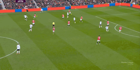 但他們發掘最深的一條路,還是從左側打曼聯的兩線之間,也就是後腰身側的空間,這一側曼聯確實兜不住。
