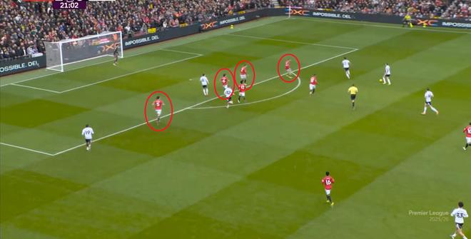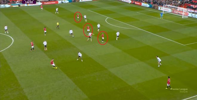 至於在這場比賽也曾出現的被對手層層推進的畫面,已經是曼聯自索肖時代以來的老問題瞭,延續到滕哈赫、阿莫林,直至目前的卡裡克,都是無解的: