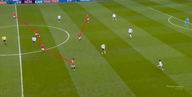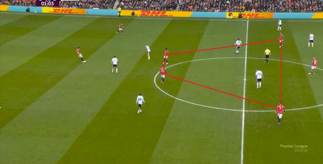 在有球的時候,本場比賽的曼聯呈現出清晰的三個半形態。