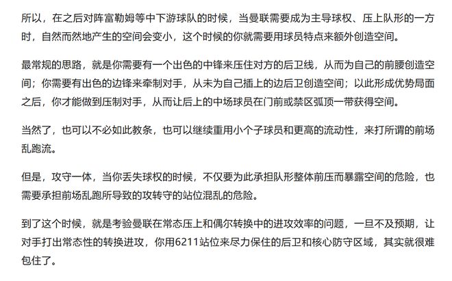 出現這樣彈不出去的困境,包括在進攻當中因為各種原因而被打斷,由此導致球隊再次從高位折返回去,這一切都在消耗著曼聯的後場。