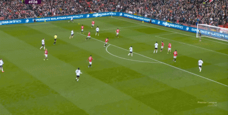 於是,因為右側確實防不住富勒姆的推進,加上部位點位跟不上,曼聯在進球之後,反而逐漸落入下風,被富勒姆掌控住瞭上半場的後半段局面。