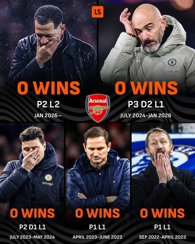 英聯杯半決賽次回合,切爾西客場0-1不敵阿森納,至此,切爾西近五位主帥都能擊敗阿爾特塔,上一位做到這一點的是圖赫爾。