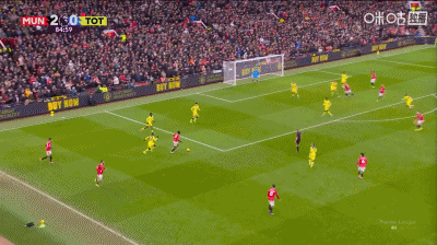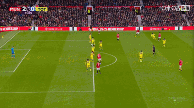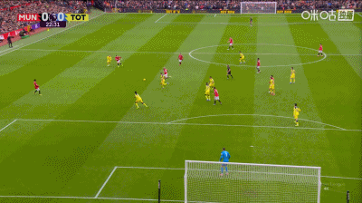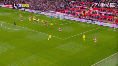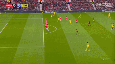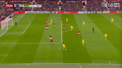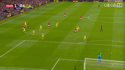 第37分鐘,曼聯角球配合,姆伯莫推桿破門,曼聯1-0領先熱刺!