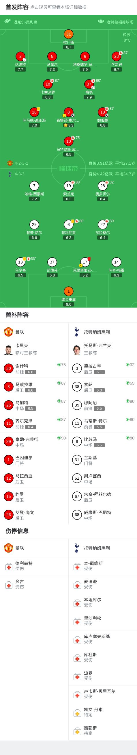 曼联 英超 索萨 热刺队 罗梅罗 剑南春 姆伯莫 卡塞米罗