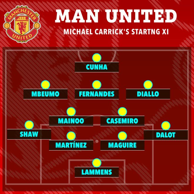 本場比賽前,曼聯在夢劇場紀念瞭慕尼黑空難68周年。卡裡克沿用瞭上輪3-2擊敗富勒姆的首發陣容,他執教後4場比賽隻有一個首發調整,就是庫尼亞替代瞭受傷的帕特裡克·多古,這跟阿莫林47場英超隻有一次首發不變截然相反。