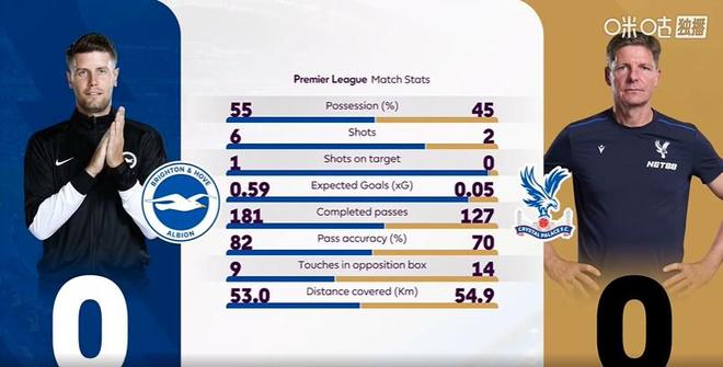 最終,水晶宮客場1-0幹翻佈萊頓,終結球隊此前各項賽事連續12場不勝的尷尬紀錄。憑借本場勝利,水晶宮也在積分榜上累積32分超越佈萊頓,來到第十三位,佈萊頓則連續五場不勝,水晶宮幹得漂亮!