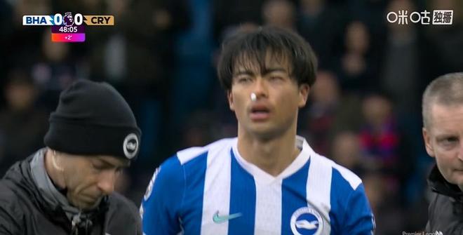 上半場臨近尾聲,水晶宮後衛萊爾馬一次漂亮的防守將三笘薫幹倒在地,日本國腳非常痛苦,甚至要隊醫進場進行止血治療。隻能說,幹的漂亮,給萊爾馬加個雞腿。