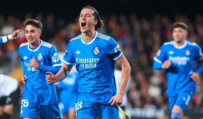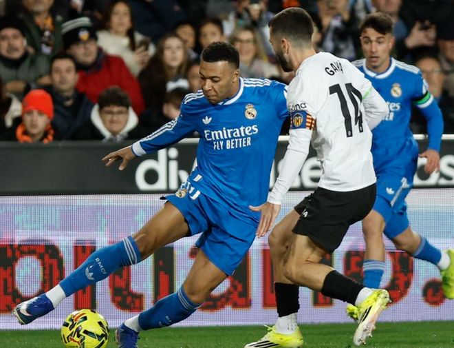 第69分钟,卡雷拉斯犯规,被出示黄牌。第76分钟,皇马进行换人调整,卜拉欣-迪亚斯和阿诺德替补上场,贡萨洛-加西亚和希门尼斯被换下。第83分钟,姆巴佩突入禁区左侧,大力抽射,踢偏了。第91分钟,姆巴佩终于进球了。依靠一次反击机会,姆巴佩在禁区中路被放空,接到迪亚斯的横传球,轻松推射破门。姆巴佩连续6场比赛进球。最终,皇马2-0击败瓦伦西亚。皇马只落后榜首的巴萨1分。