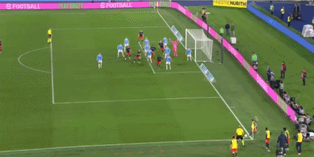 第40分鐘,左路底線附近傳中,馬魯西奇甩頭攻門稍稍高出