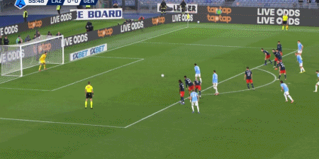 第56分鐘,伊薩克森造點,佩德羅主罰點球命中,拉齊奧1-0熱那亞