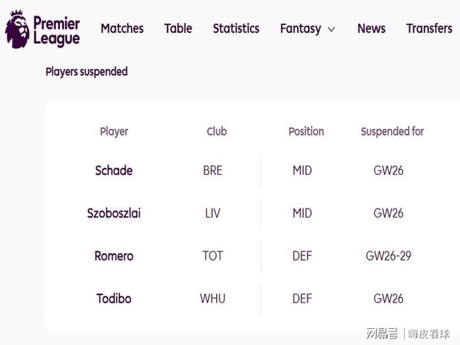 同樣是紅牌,熱刺的羅梅羅就沒有那麼幸運瞭,英超官方信息顯示,羅梅羅需要停賽四場,由於熱刺足總杯出局,四個對手都是來自英超,分別是紐卡斯爾、阿森納、富勒姆和水晶宮,剛好在客場挑戰利物浦的時候,可以回歸賽場。