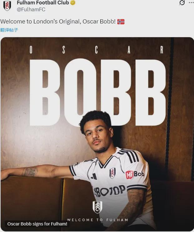 官方:富勒姆确认从曼城签下了奥斯卡-鲍勃,双方签署了一份2031年到期的为期五年半的合同,这名22岁的新星将身穿14号球衣。