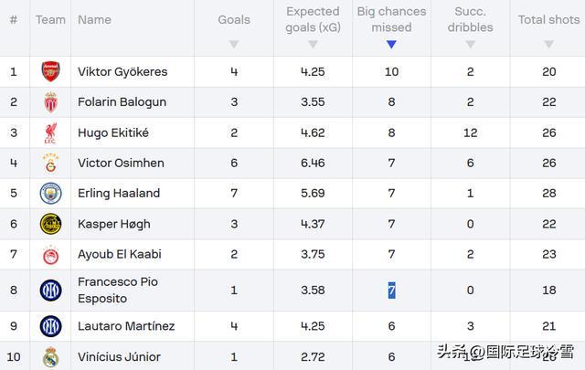 再者,皮奥的体力都用在了肉搏和跑动方面,必然会对射门产生影响。所以他欧冠7次“浪费黄金机会”,是所有球员的并列第4,考虑到他出场时间偏少,所以场均数据排名更靠前。这方面,他有待提升。