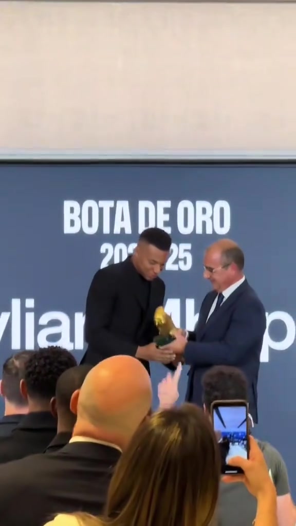首次获奖姆巴佩领取24-25赛季欧洲金靴奖