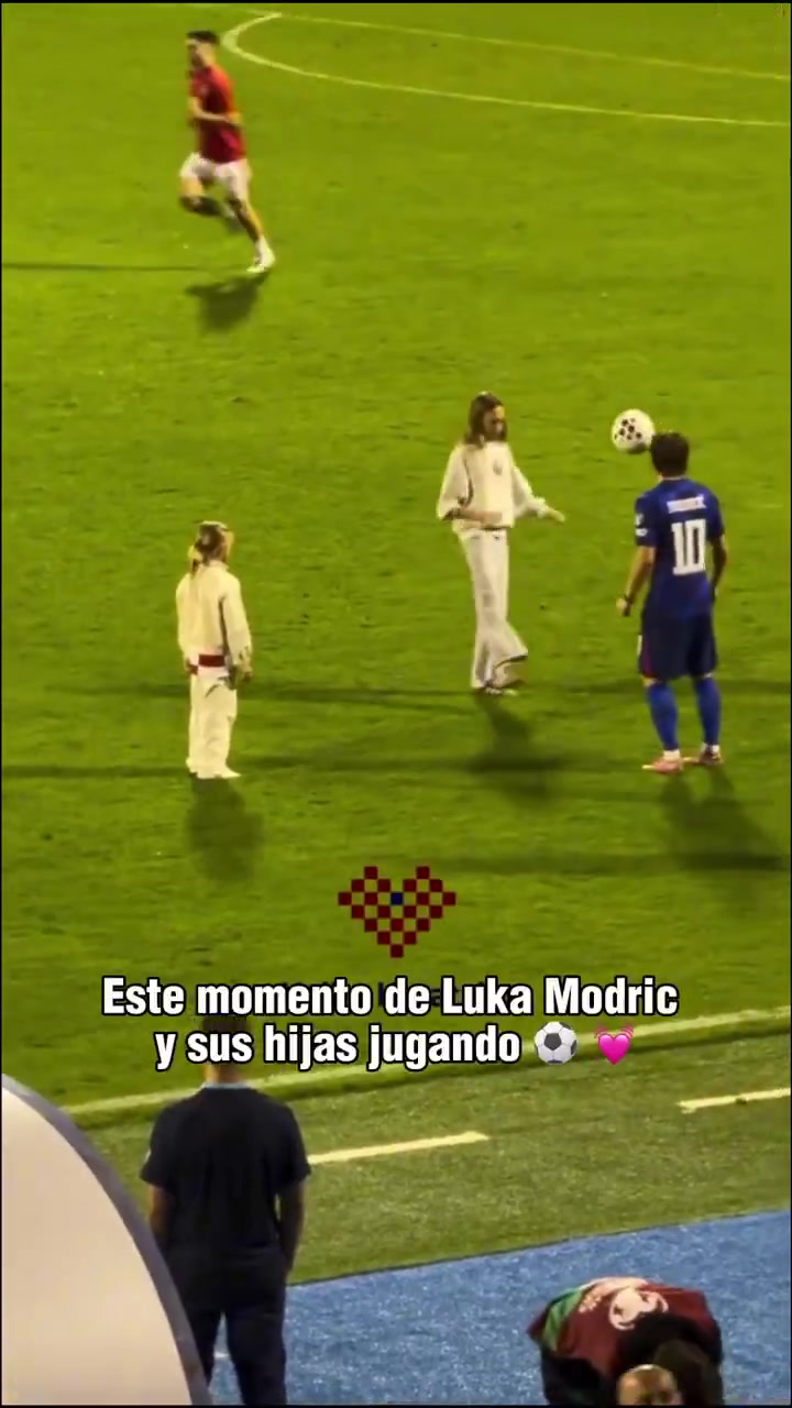 岳父大人莫德里奇在球场上教女儿颠球女儿看着比老爹高