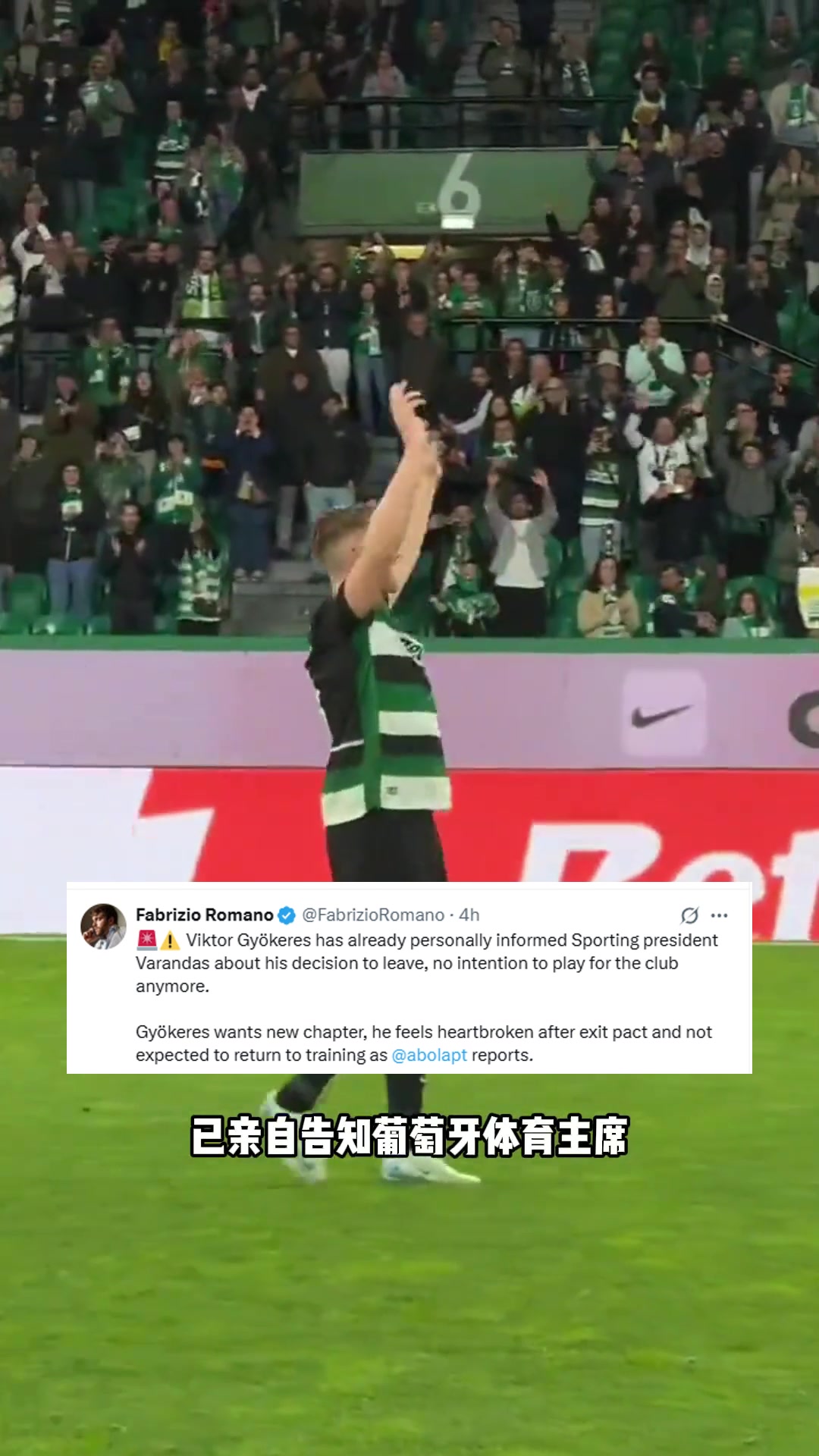 罗马诺约克雷斯已亲自告知葡体主席不再为球队效力