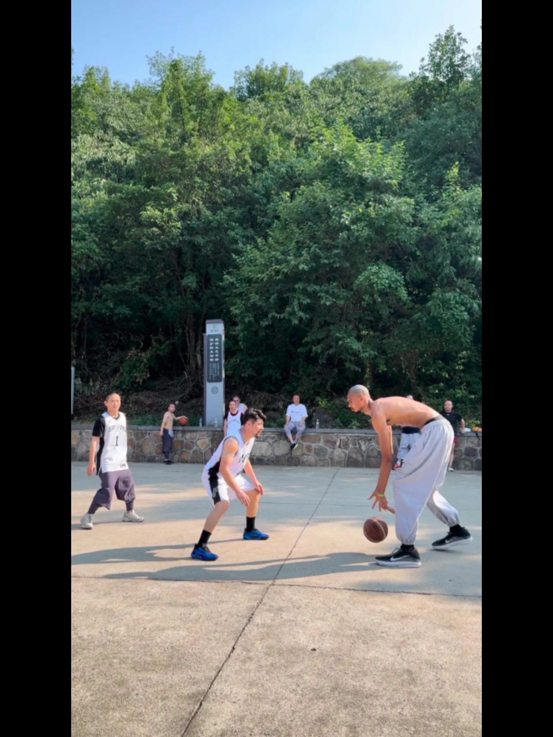 第一高僧欺负人文班在少林寺打球还用跳投出手点都比筐高了