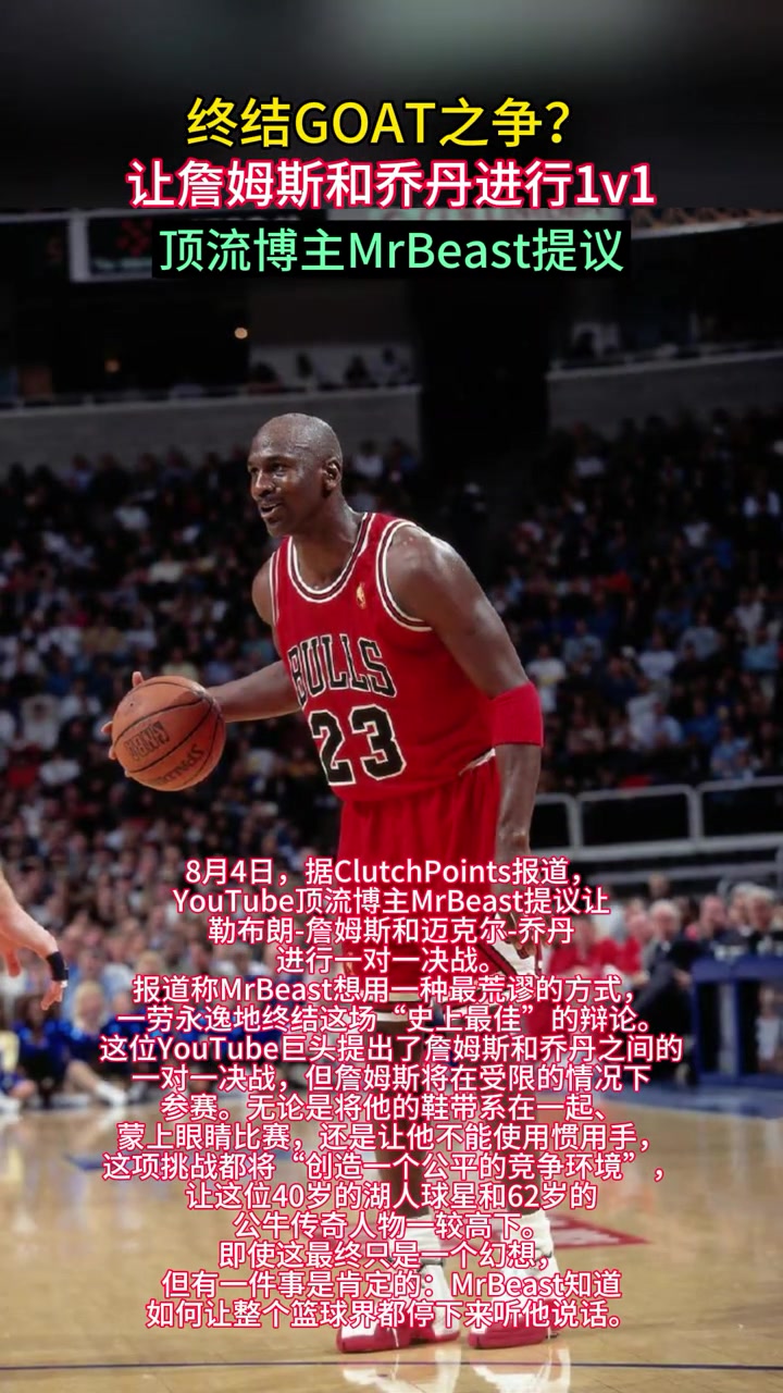 之争油管顶流野兽先生提议让詹姆斯与乔丹进行一场单挑