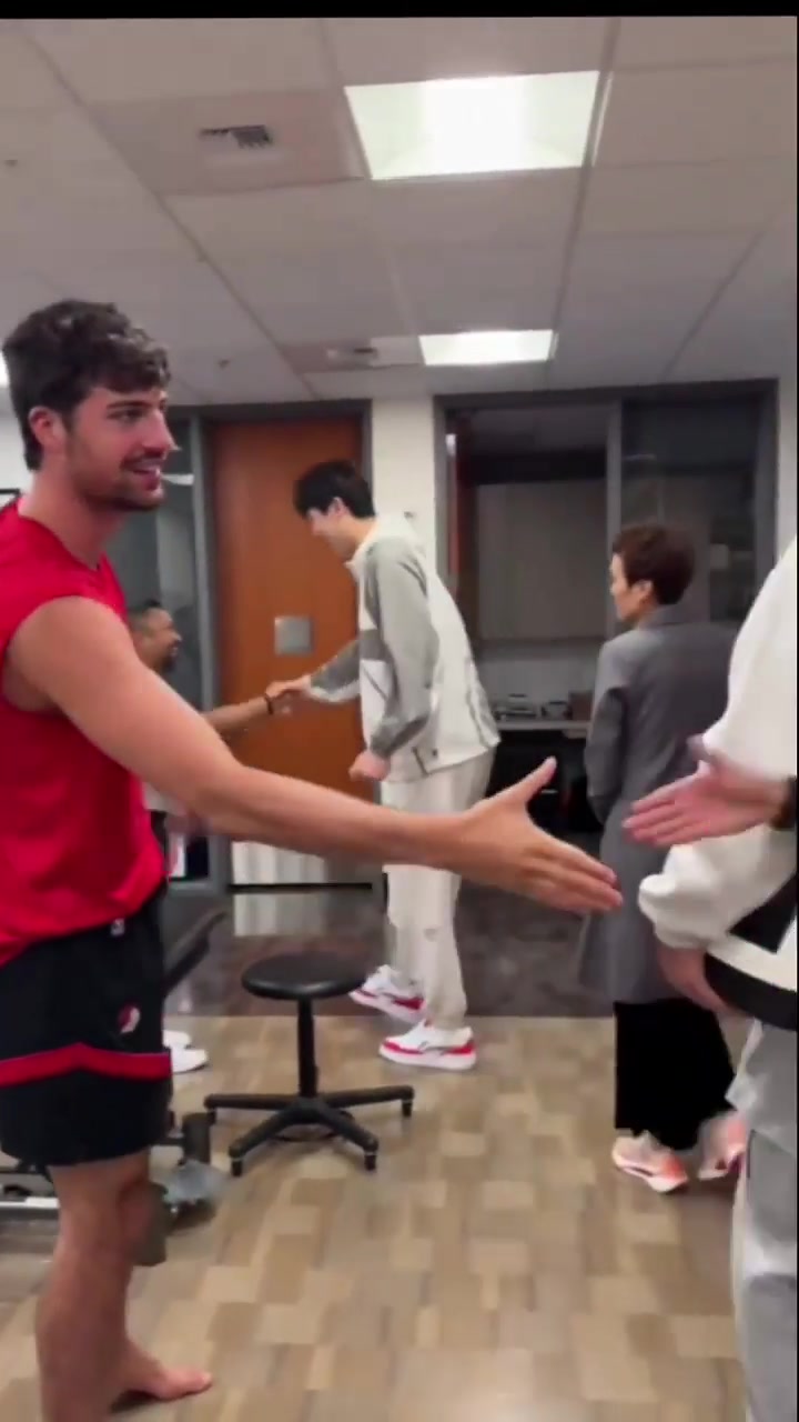 小吧直击开拓者赛前发布会斯普利特与丹尼格林老友相见抱一抱