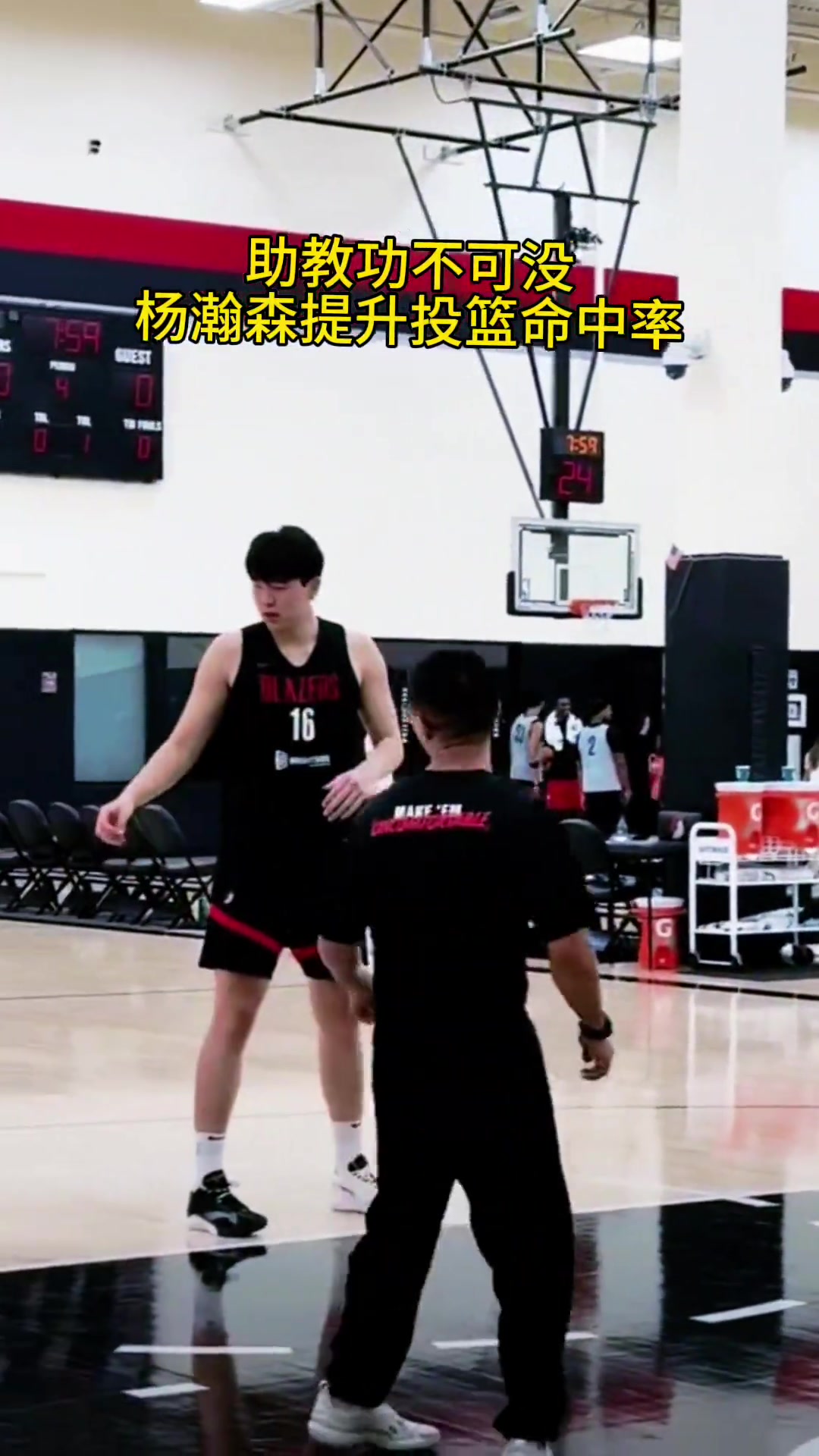 找找手感杨瀚森赛前热身练习近筐小勾手左右手都来