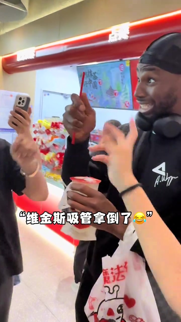 维金斯在机场买蜜雪冰城喝嘬了一口直言好喝