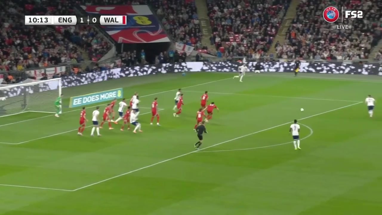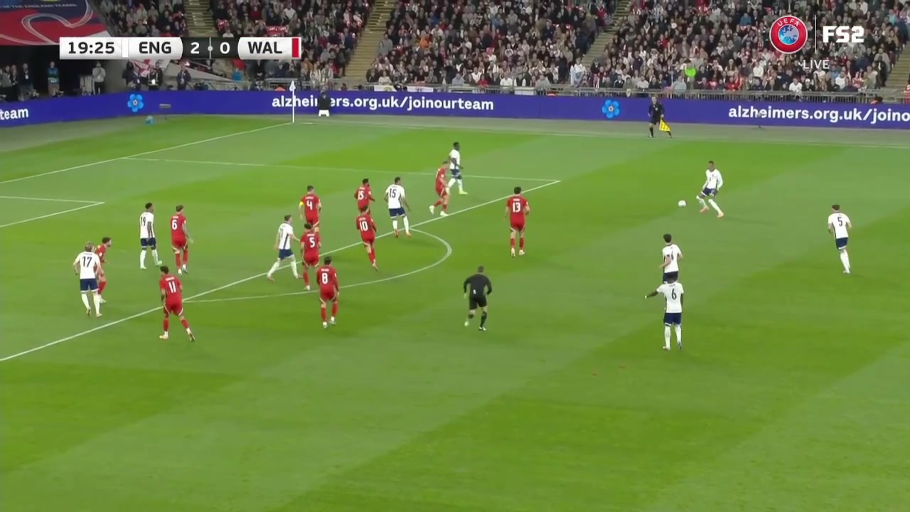 萨卡禁区内不停球精彩凌空斩破门英格兰1-0领先塞尔维亚