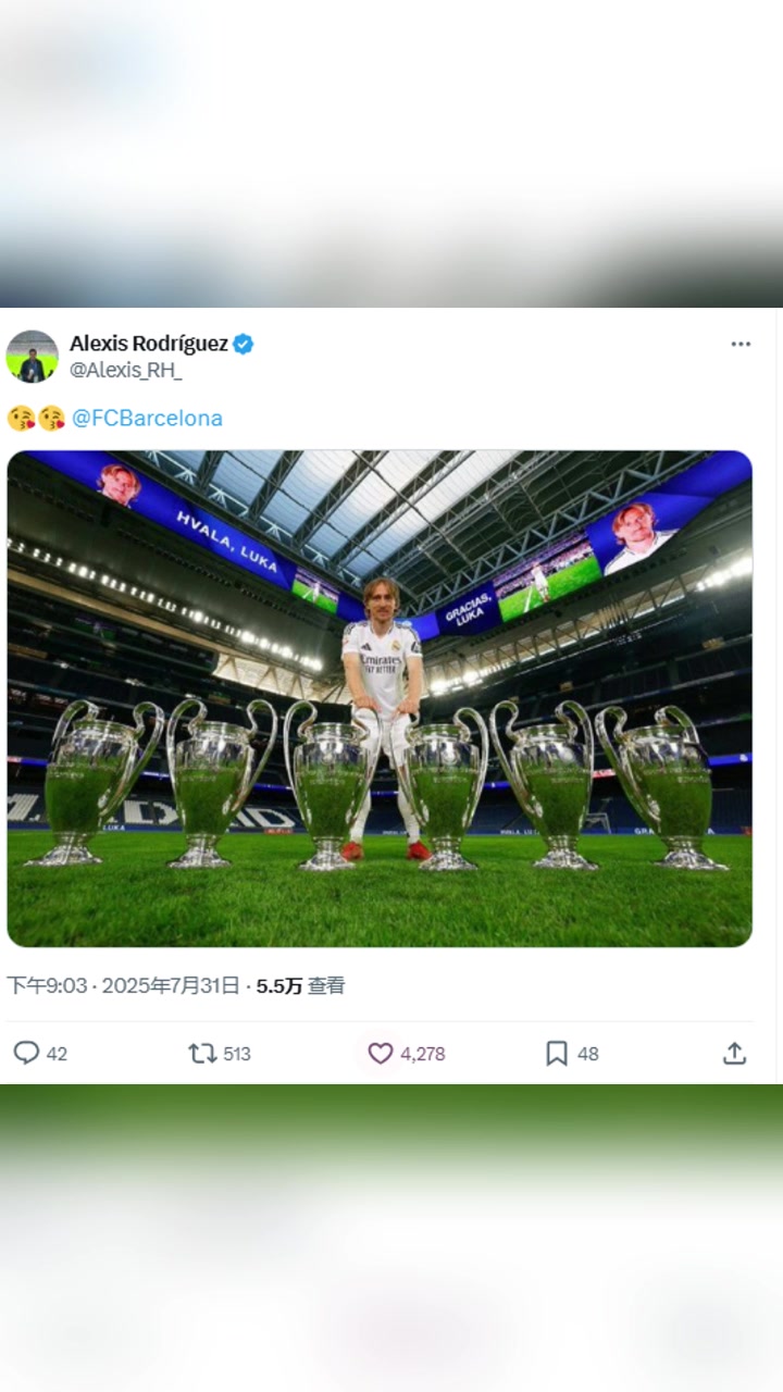 记者晒魔笛与6座欧冠奖杯合照艾特巴萨官推