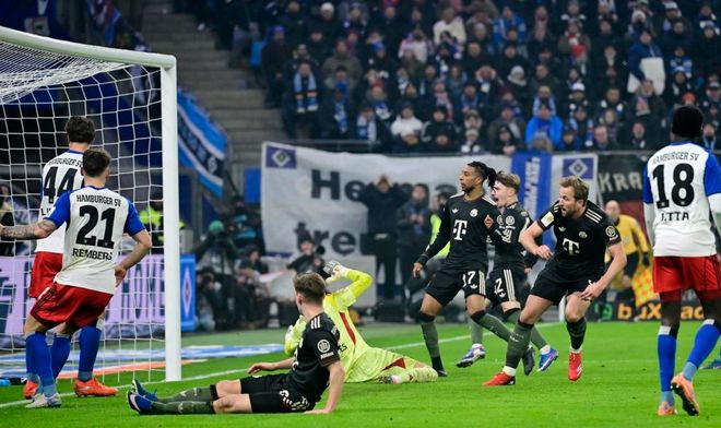半场:拜仁1-1汉堡,法比奥-维埃拉点射,凯恩扳平