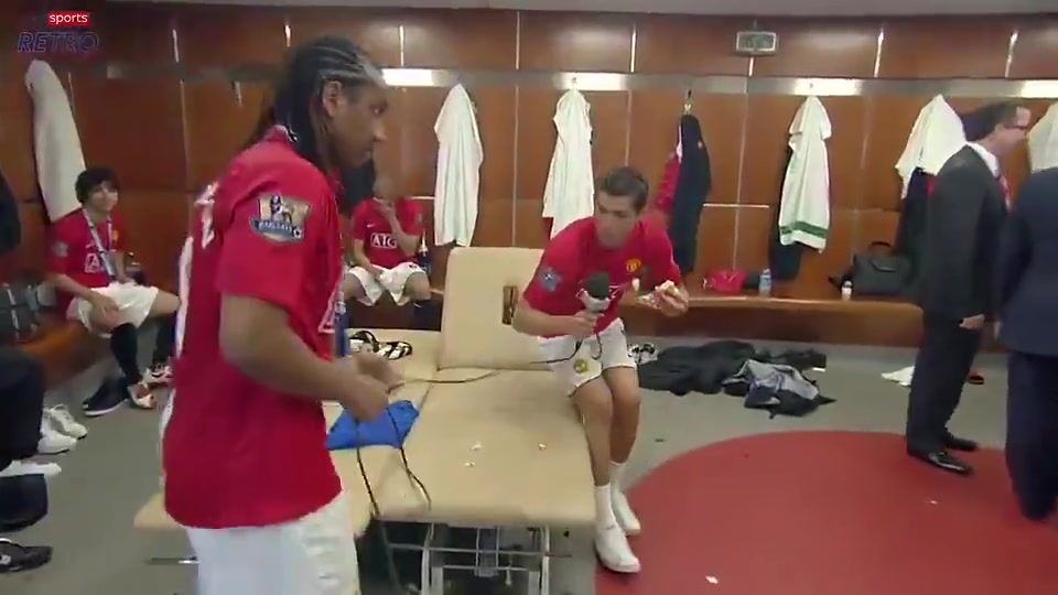 满满的回忆啊16年前的曼联更衣室C罗吃着汉堡采访安德森