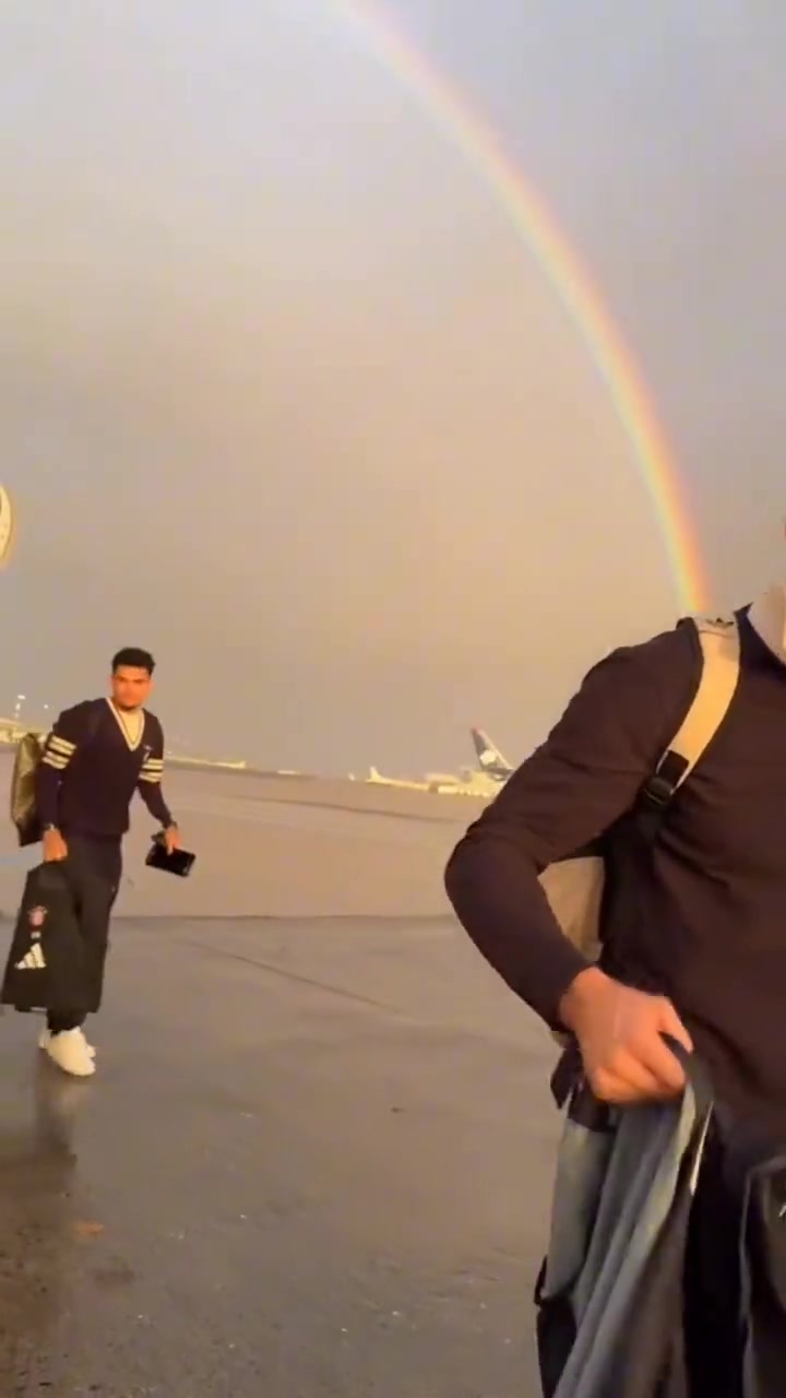 今晚好运加持拜仁抵达巴黎时遇见落日彩虹
