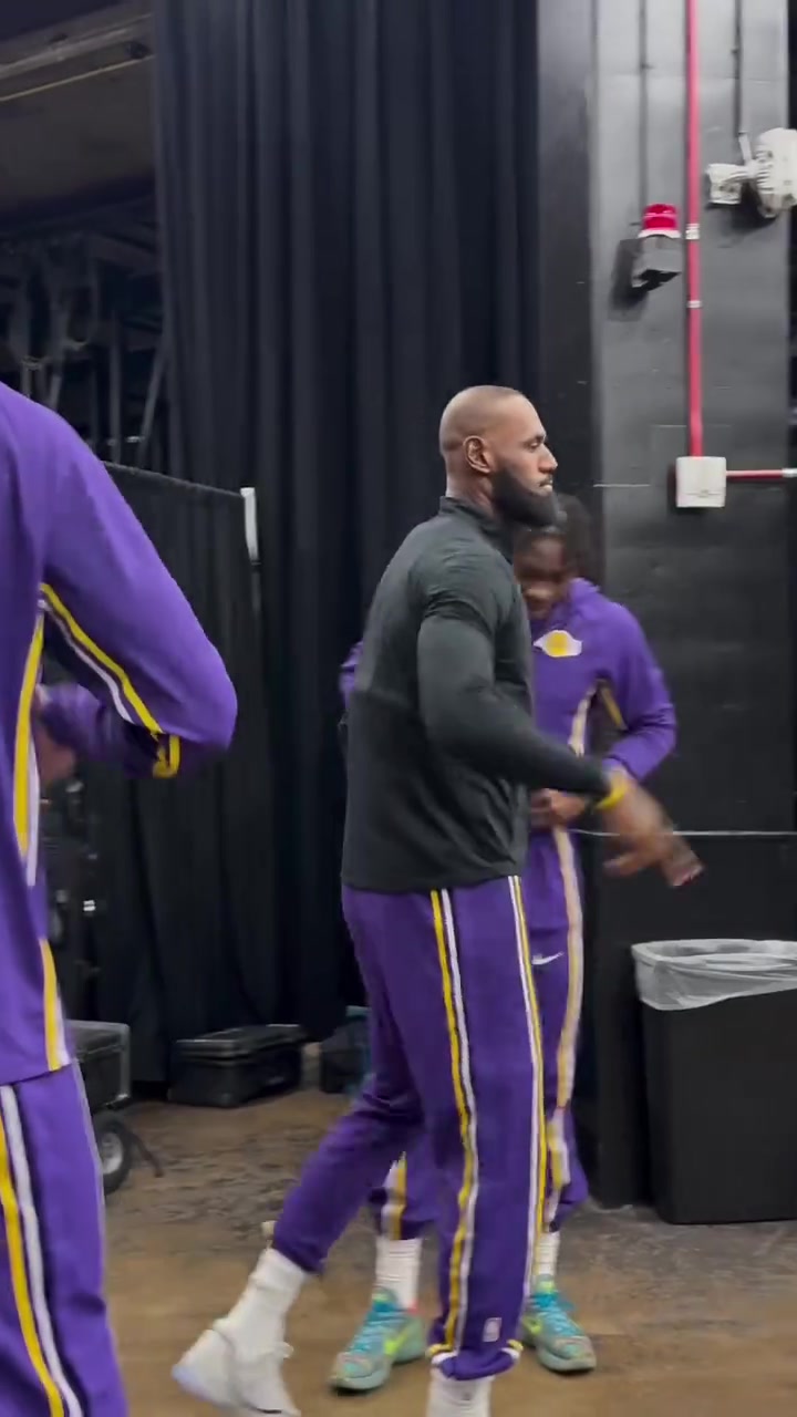湖人四连客第一场对阵太阳赛前詹姆斯和队友做出不同的激励动作